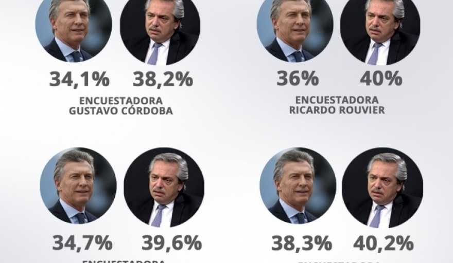 En cambio, Celag, publicó un relevamiento según el cual, la diferencia para el Frente de Todos alcanzaba los 9 puntos. Fernández se ubicaba en 42,5% y Macri, en 33,4%. Según Synopsis, el Frente de Todos se haría con el 42,3%, mientras que el oficialismo llegaría al 38,4%. Así, la diferencia era de +3,9% a favor de la fórmula Alberto Fernández-Cristina Kirchner. Raúl Aragón & asociados, en tanto, vislumbraba un 41,6% para la dupla F - F y un 36,1% para Juntos por el Cambio. Y Gustavo Córdoba & Asociados ubicaba a Fernandez arriba de Mauricio Macri en las preferencias: 38,2% a 34,1%.