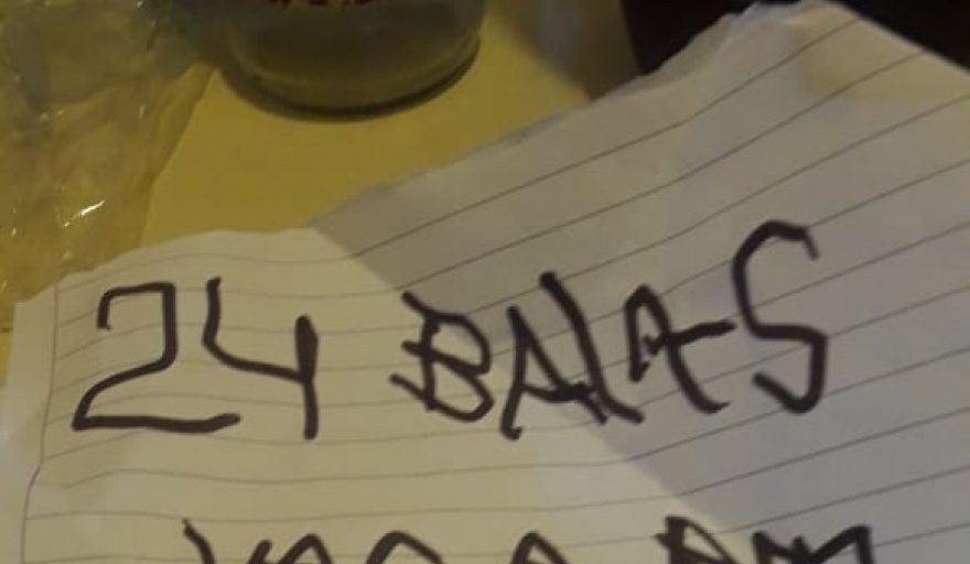 papel mal escrito que se refiere a las balas y el año de aniversario: “24 BALAS VAS A VER.