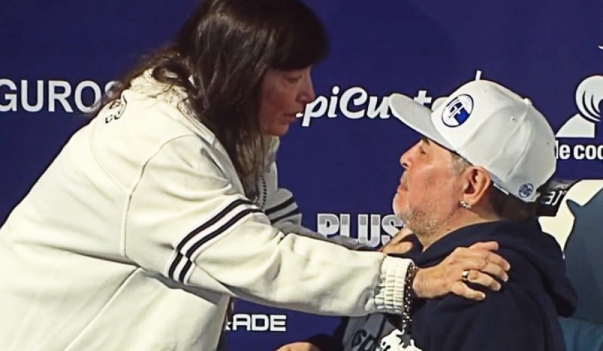 "Soy la hermana de Cristina", se presentó a viva voz Fernández cuando concluía la ronda de prensa, hecho que sorprendió a Maradona, que se paró para recibirla.