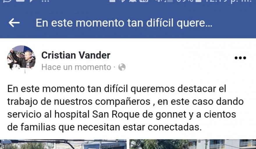 Los telefónicos trabajan a destajo dando conectividad a hospitales y diferentes centros de salud y atención comunitaria. Vender destaco el esfuerzo que se realiza a través de guardias especiales que permitan mantener la contectividad durante la cuarentena.