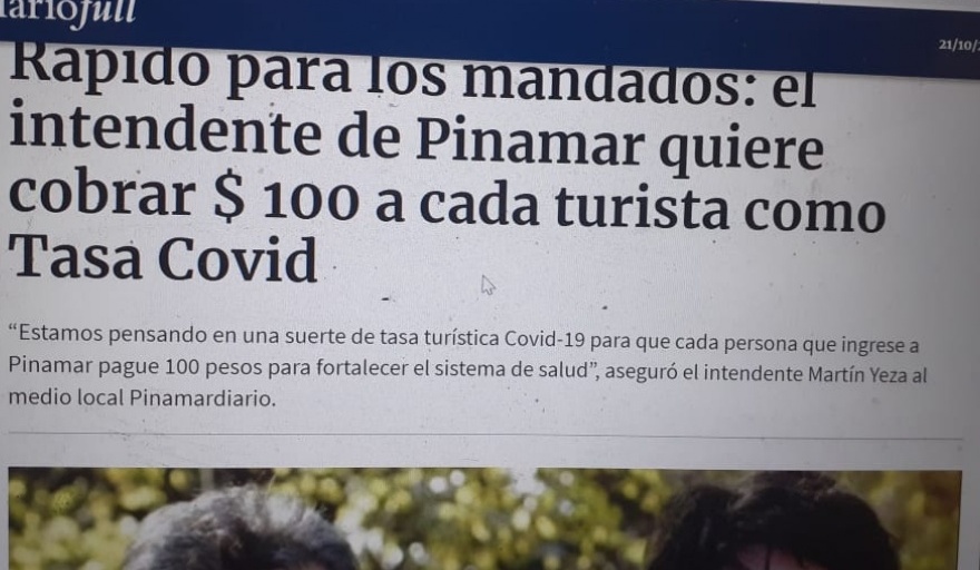 "Estamos trabajando en Pinamar una tasa de turismo para COVID, actualmente se está