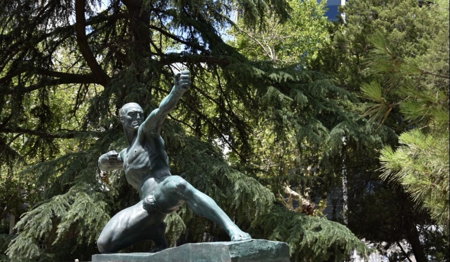 Al arco, Hércules: restauran una emblemática estatua en Plaza Moreno