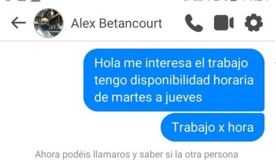 De acuerdo a lo que explicó la víctima de esta situación, había publicado la oferta laboral vía Facebook, y ella se comunicó con él por el privado.