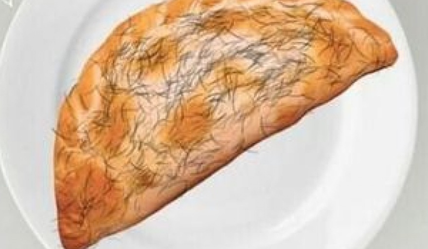 muestra a una empanada llena de pelos, servida en un plato, haciendo alusión a los