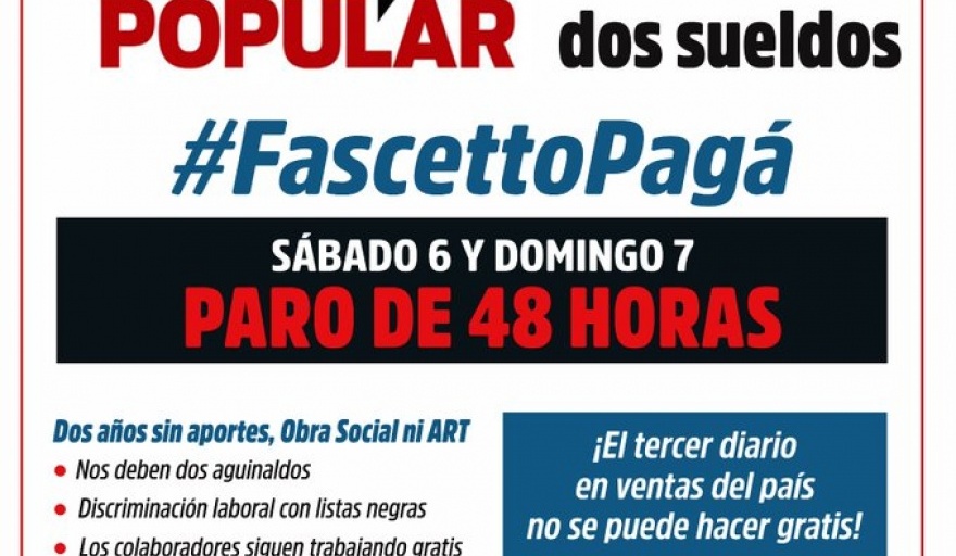 Este fin de semana los trabajadores y trabajadoras de Prensa de Diario Popular estamos de paro.