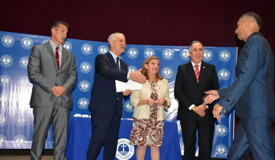 En representación de todos los homenajeados, María Rocío Salvo Batista, nueva licenciada en Gestión de Recursos Humanos, contó su experiencia dentro de la institución: “Esta no es una despedida, sino todo lo contrario: es un punto de partida. Llegar hasta acá significó mucho más que aprobar materias y finales. Fue aprender a sostener en el tiempo, a confiar, a tener paciencia y a descubrir que el esfuerzo, aunque a veces se demore, siempre da sus frutos”. Visiblemente emocionada, recordó que su historia con la UCALP comenzó varias décadas atrás, con su abuela formando parte del personal de maestranza en la década de los ’80.