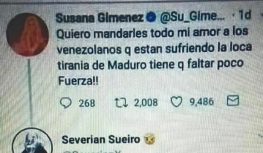 "Quiero mandar todo mi amor a los venezolanos que están sufriendo la dictadura de Maduro. Tiene que faltar poco. Fiuerza", posteó la que fajaba Monzón (muy mal Monzón).