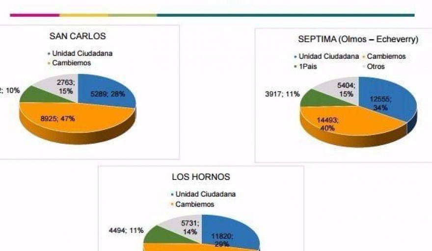 No obstante, en el Oeste y en el Sur de la ciudad, los números se distribuyeron de un modo un tanto más parejo. En Arana y Parque Sicardi, la diferencia promedio entre Cambiemos y Unidad Ciudadana fue de 5%. En Olmos y Echeverry, el oficialismo triunfó por 6%. En Altos de San Lorenzo, la distancia fue de 9%.