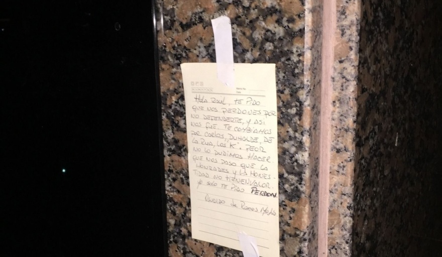 Quitaron una placa del monumento a Alfonsín y dejaron un mensaje pidiéndole perdón por votar a los presidentes que lo sucedieron