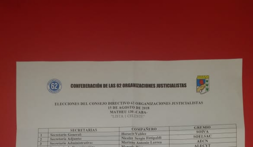 Con el apoyo de la CGT que conduce Luis Barrionuevo y del sector que responde a Hugo Moyano, unas 70 organizaciones votaron ayer una nueva conducción de las 62 Organizaciones Peronistas, de esta forma corrieron a la Uatre hoy dentro de Cambiemos