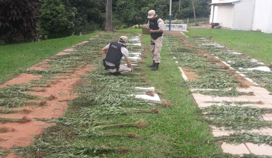 Sobre una barranca a 2500 metros de la costa del Río Paraná, Prefectura Naval Argentina encontró una plantación de marihuana de unos 70 por 70 metros de diámetro, con un aforo estimado de 7.421.000 millones de pesos, en medio del selva misionera. El terreno es parte de un predio de 7 mil hectáreas perteneciente al Ejército Argentino, confirmaron fuentes del caso al diario Perfil.