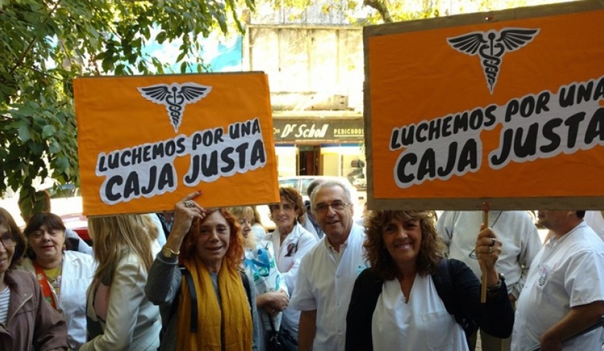 Los profesionales de la salud que muestran su disgusto por las jubilaciones, pensiones y subsidios al límite de la línea de pobreza que abona la Caja – a pesar de que tiene inversiones en campos en Corrientes y Misiones, cocheras en Puerto Madero y el hotel cinco estrellas inaugurado recientemente frente al Teatro Argentino – asistieron a las adyacencias del edificio donde se realizó la Asamblea con chaquetas o guardapolvos blancos.